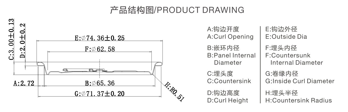 | 鉤邊外徑(mm) | 74.3±0.15 |