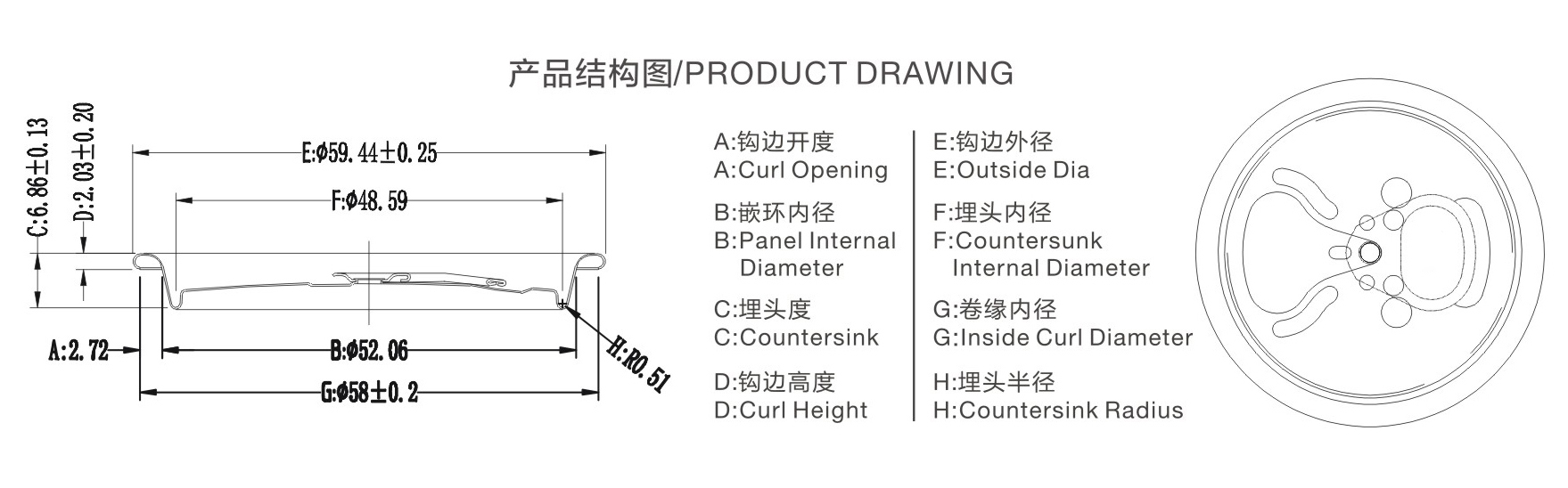| 鉤邊外徑(mm) | 59.44±0.25 |