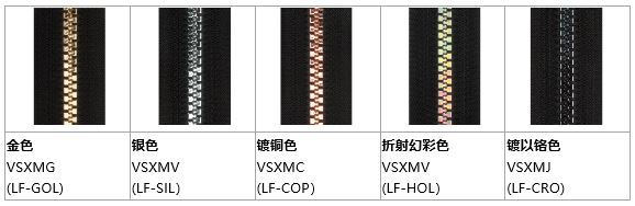 VISLON® 拉鏈是由射出塑料(liào)拉鏈齒組成(chéng),比如聚甲醛樹(shù)脂。較同尺寸的金屬拉鏈輕。在射出過程中成色,有多(duō)種顏(yán)色(sè)可供選擇。 5號(hào)樹脂拉鏈推出新品鏡麵效果拉鏈(liàn)了。 更多關於鏡麵效(xiào)果拉(lā)鏈詳細(xì)資料請登(dēng)陸\"VISLON® 鏡麵拉(lā)鏈(liàn)\"