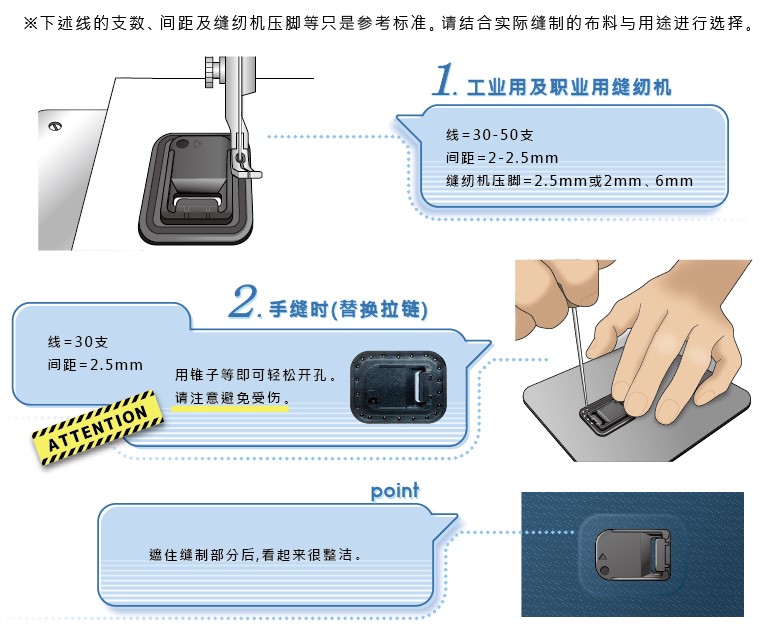 不能使用(yòng)家用(yòng)縫紉機(原因是動力(lì)不足(zú),可能導致不(bú)下針)